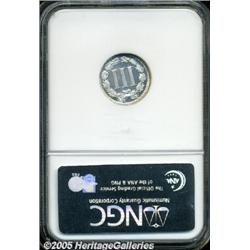 <B>1870 3CN PR65 Cameo NGC.</B></I> Fully struck and seemingly pristine, with bright, untoned surfaces that reveal deep mirrors in the fields and mild frosting on the perfectly formed devices. The dies are rotated counterclockwise by approximately five degrees. A great little cameo Gem proof. Population: 11 in 65 Cameo, 13 finer in Cameo (2/05).