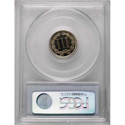 <B>1870 3CN PR65 Cameo PCGS.</B></I> This delightful Gem specimen has good contrast and pleasing rose-gold and powder-blue patina. Population: 17 in 65 Cameo, 7 finer (6/07).<BR><BR><b>Shipping:</b> Coins & Currency (<a target="_blank" href="http://www.heritageauctions.com/common/shipping.php">view shipping information</a>\)