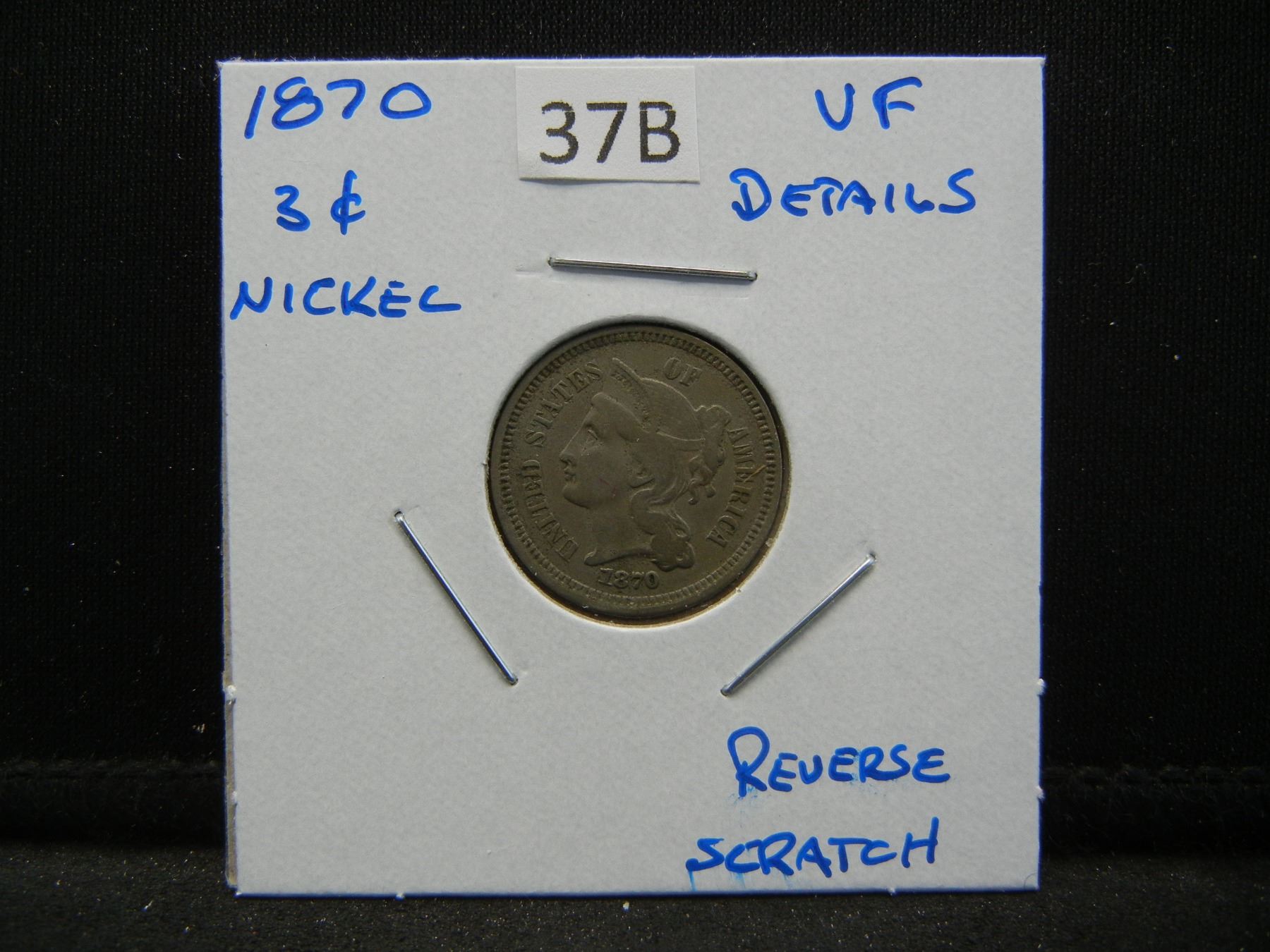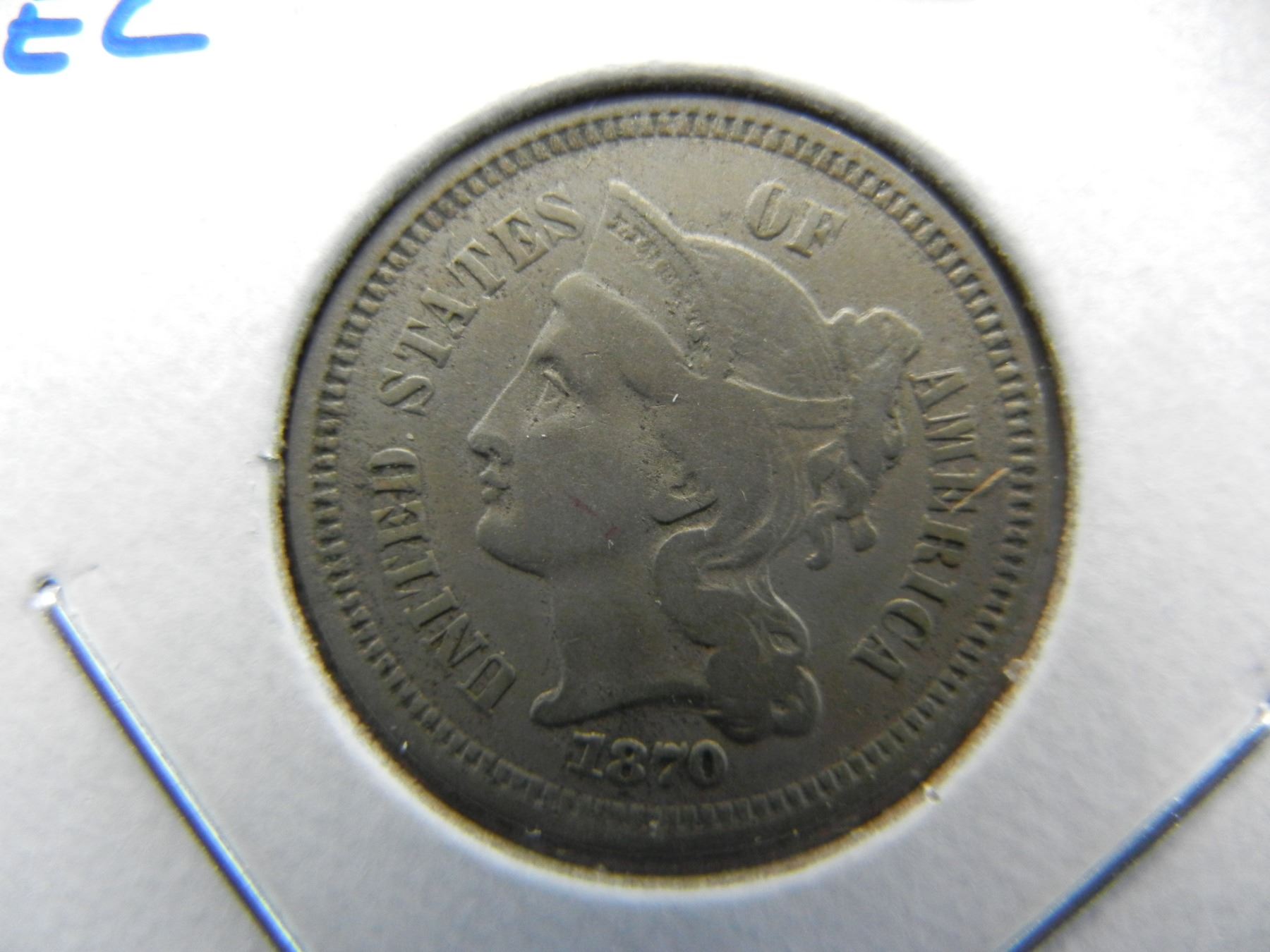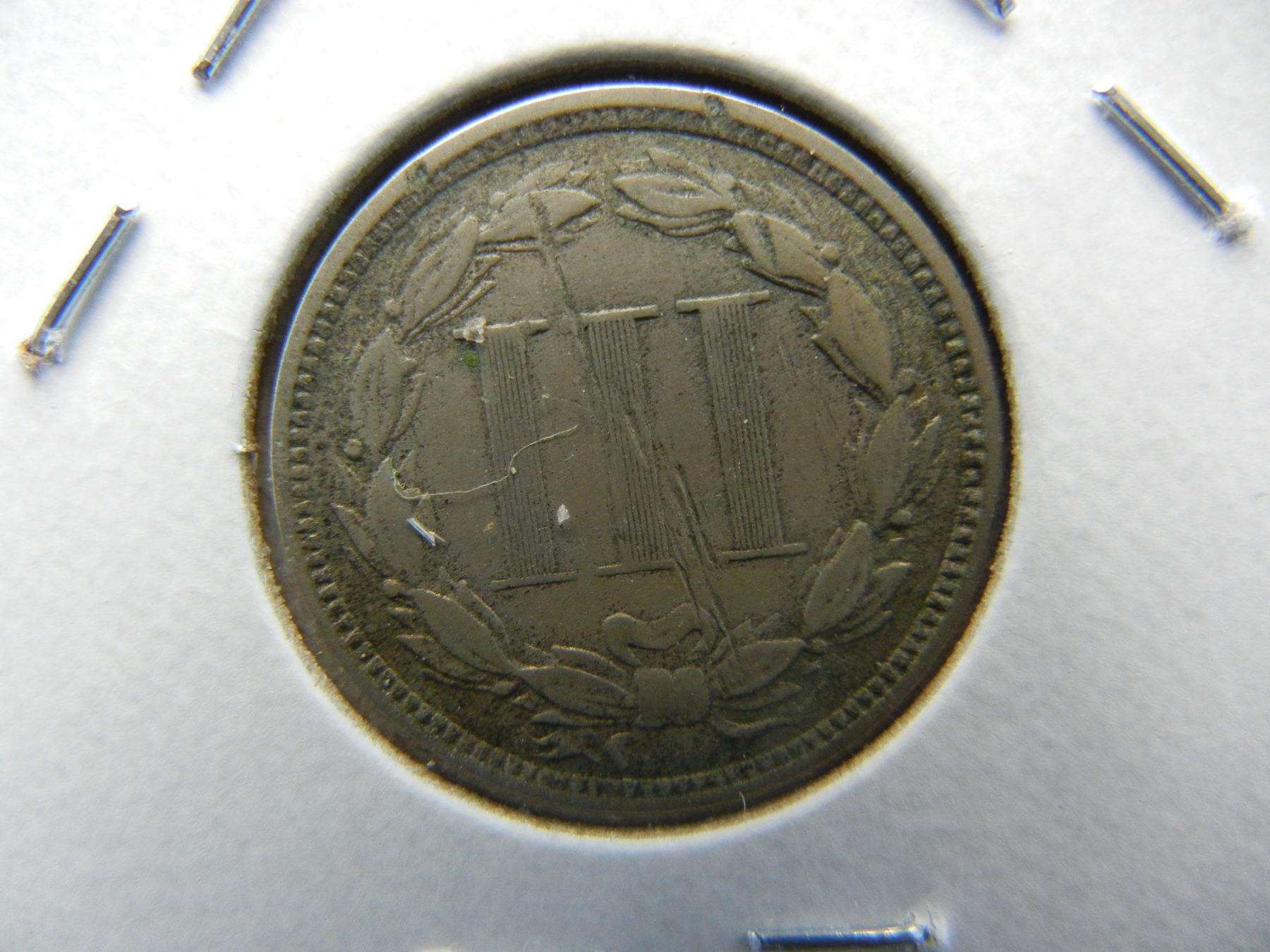 1870 3c Nickel. VF Details. Reverse Scratch.