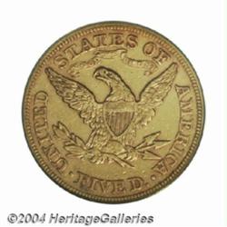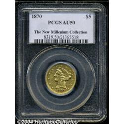 <table><tbody><tr><td><table> <TR><TD width="100%"><TABLE cellSpacing=1 cellPadding=3 width="100%" border=0><TBODY><TR><TD width="100%" bgColor=#79735c><FONT face=arial color=#ffffff size=3><B>Description</B> </FONT></TD></TR><TR><TD width="100%" bgColor=#ffffff><FONT face=arial size=2><B>1870 $5 AU50 PCGS.</B></I> The absence of individually notable abrasions and the extent of remaining luster ensure the eye appeal of this nicely defined Half Eagle. Gold coins were hoarded in favor of paper money during this era except in the far west. A stingy mintage of 4,000 survivors guarantees that survivors in any grade are few and far between. Population: 6 in 50, 13 finer (10/03).<BR><I>From The New Millennium Collection, Part 3.</B></I> </FONT></TD></TR></TBODY></TABLE></TD></TR></TBODY></TABLE><BR><A name=PricesRealized></A><TABLE cellSpacing=0 cellPadding=0 width="100%" bgColor=#000000 border=0><TBODY><TR><TD width="100%"><TABLE cellSpacing=1 cellPadding=3 width="100%" border=0><TBODY><TR><TD width="100%" bgColor=#79735c><A name=PR><FONT face=arial color=#ffffff size=3><B>Previous Prices from Heritage Auctions</B> </FONT></A></TD></TR><TR><TD bgColor=#f6f6ed><TABLE cellSpacing=0 cellPadding=0 width="100%" border=1><TBODY><TR><TD align=middle width="33%"><B>Date</B></TD><TD align=middle width="33%"><B>Service</B></TD><TD align=middle width="33%"><B>Price</B></TD></TR><TR bgColor=whitesmoke><TD width="33%"><B>01/04/1995</B></TD><TD width="33%">PCGS</TD><TD width="33%">$2,750.00</TD></TR><TR bgColor=whitesmoke><TD width="33%"><B>11/01/1996</B></TD><TD width="33%">PCGS</TD><TD width="33%">$2,090.00</TD></TR></TBODY></TABLE></TD></TR><TR><TD bgColor=#ffffff><FONT face=arial size=1 ?>PLEASE NOTE: All prices realized reflect the final hammer price PLUS the buyer's premium in auctions that charge a buyer's premium. Each item has a notation at the top of the listing indicating whether that lot included a buyer's premium. Example: A item that sells with a final hammer price of $100 and a 20% buyer's premium will display with a price realized of $120. All information listed is intended to be as accurate as possible, but errors are possible. Please use this guide carefully and inform us of any inaccuracies. </FONT></TD></TR></TBODY></TABLE></TD></TR></TBODY></TABLE><BR><TABLE cellSpacing=0 cellPadding=0 width="100%" bgColor=#000000 border=0><TBODY><TR><TD width="100%"><TABLE cellSpacing=1 cellPadding=3 width="100%" border=0><TBODY><TR><TD width="100%" bgColor=#79735c colSpan=6><FONT face=arial color=#ffffff size=3><B>Price Guide*</B> </FONT></TD></TR><TR bgColor=#f6f6ed><TD align=middle><B>Grade</B> </TD><TD align=middle><B>Coin World<BR>(Trends)</B> </TD><TD align=middle><B>Numismedia<BR>Retail</B> </TD><TD align=middle><B>Numismedia<BR>Wholesale</B> </TD><TD align=middle><B>Coin<BR>Universe</B> </TD><TD align=middle><B>Heritage<BR>Value Index</B> </TD></TR><TR bgColor=#ffffff><TD align=middle>45</TD><TD align=right>$2,000.00</TD><TD align=right>---</TD><TD align=right>---</TD><TD align=right>---</TD><TD align=right>$1,675.83</TD></TR><TR style="FONT-WEIGHT: bold" bgColor=#cccfdd><TD align=middle>50</TD><TD align=right>$3,350.00</TD><TD align=right>---</TD><TD align=right>$2,350.00</TD><TD align=right>---</TD><TD align=right>$2,230.83</TD></TR><TR bgColor=#ffffff><TD align=middle>53</TD><TD align=right>---</TD><TD align=right>---</TD><TD align=right>$2,950.00</TD><TD align=right>---</TD><TD align=right>$3,147.96</TD></TR><TR bgColor=#ffffff><TD colSpan=6><FONT size=1>*All information listed is intended to be as accurate as possible, but errors are possible. No item may be returned or refused based on this information which is provided as a service to our customers. You should contact each pricing source directly to determine the accuracy of this information. </FONT></TD></TR></TBODY></TABLE></TD></TR></TBODY></TABLE><BR><TABLE cellSpacing=0 cellPadding=0 width="100%" bgColor=#000000 border=0><TBODY><TR><TD width="100%"><TABLE cellSpacing=1 cellPadding=3 width="100%" border=0><TBODY><TR><TD width="100%" bgColor=#79735c><FONT face=arial color=#ffffff size=3><B>Population Guide</B> </FONT></TD></TR><TR bgColor=#ffffff><TD align=middle><!-- Begin Output of Population Grid--><TABLE cellSpacing=0 cellPadding=0 width="100%" border=0><TBODY><TR><TD vAlign=center><TABLE cellSpacing=0 width="100%" border=1 cellsadding="3"><TBODY><TR><TD vAlign=center><TABLE cellSpacing=0 cellPadding=3 width="100%" border=1><TBODY><TR><TD vAlign=center align=middle bgColor=#f0f1e8 colSpan=2 <CENTER><FONT face=Arial size=2><B>PCGS Pop </B></FONT><CENTER></CENTER></TD><TD vAlign=center align=middle bgColor=#f0f1e8 colSpan=2><CENTER><FONT face=Arial size=2><B>NGC Pop</B></CENTER></FONT></TD></TR><TR><TD vAlign=center><FONT face=Arial size=2>(50)</FONT> </TD><TD vAlign=center align=right><FONT face=Arial size=2>6</FONT> </TD><TD vAlign=center><FONT face=Arial size=2>(50)</FONT> </TD><TD vAlign=center align=right><FONT face=Arial size=2>2</FONT> </TD></TR><TR><TD vAlign=center><FONT face=Arial size=2>(>50)</FONT> </TD><TD vAlign=center align=right><FONT face=Arial size=2>13</FONT> </TD><TD vAlign=center><FONT face=Arial size=2>(>50)</FONT> </TD><TD vAlign=center align=right><FONT face=Arial size=2>20</FONT> </TD></TR></TBODY></TABLE></TD></TR></TBODY></TABLE></TD></TR></TBODY></TABLE><!-- End Output of Population Grid--></TD></TR></TBODY></TABLE></TD></TR></TBODY></TABLE><BR><TABLE cellSpacing=0 cellPadding=0 width="100%" bgColor=#000000 border=0><TBODY><TR> <font color='#000000'><span style='background-color: #FFFFFF'><td bgcolor='#FFFFFE'> Important notice: Heritage usually auctions material at the rate of 200-250 lots per hour. On some occasions eBay Live bid software or the Internet may not be able to keep up with the pace of the auction. We recommend placing a realistic absentee bid now as insurance to avoid disappointment. Occasionally the auctioneer may eliminate or reject an eBay Live bid, and the auctioneer may also reopen a l