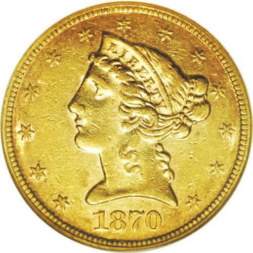1870 $5 AU58 NGC. Despite a higher mintage, the 1870 h 1870[$5] AU58 NGC.