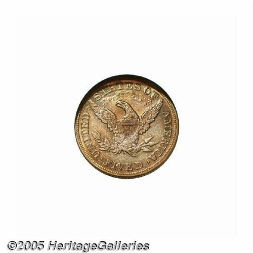<B>1870<$5> AU58 NGC.</B></I> Just 4,000 business strikes were coined on January 17, with better grade survivors being extremely scarce. In fact, only a single Mint State coin, a PCGS MS61, has been certified. This flashy, predictably reflective example has deep orange surfaces with lilac and amber toning. Population: 6 in 58, 0 finer (6/05).