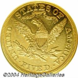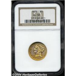 <B>1870<$5> AU58 NGC.</B></I> Just 4,000 business strikes were coined on January 17 with survivors being extremely rare. Walter Breen stated this issue is extremely rare above XF. This near-Mint State coin has reflective deep orange surfaces with lilac and amber toning. This is the highest grade 1870 half eagle we have ever offered. <BR><BR><B>Important notice:</B> Heritage usually auctions material at the rate of 200-250 lots per hour. On some occasions eBay Live bid software or the Internet may not be able to keep up with the pace of the auction. We recommend placing a realistic absentee bid now as insurance to avoid disappointment. Occasionally the auctioneer may eliminate or reject an eBay Live bid, and the auctioneer may also reopen a lot after the close of the eBay live bidding (usually because we missed an audience bid), and may reject your bid even if it shows you as the winning bidder. By bidding via eBay Live, you agree that Heritage may award the lot to another bidder at its sole discretion under the circumstances described above or any other reasonable circumstances. Since eBay bids are not shown to us until we open the lot on the floor, we treat those bids just like floor bids. In most cases the floor responds before the eBay bid is presented to us, due to Internet lag time, so for consistency we have made it a policy that floor bids are always considered first over tie eBay live bids. Also please note that all Heritage lots purchased through eBay Live carry a 20% Buyer's Premium. Please make sure you read the Terms and Conditions before you bid. </span></font></tr></table></td></tr></table>