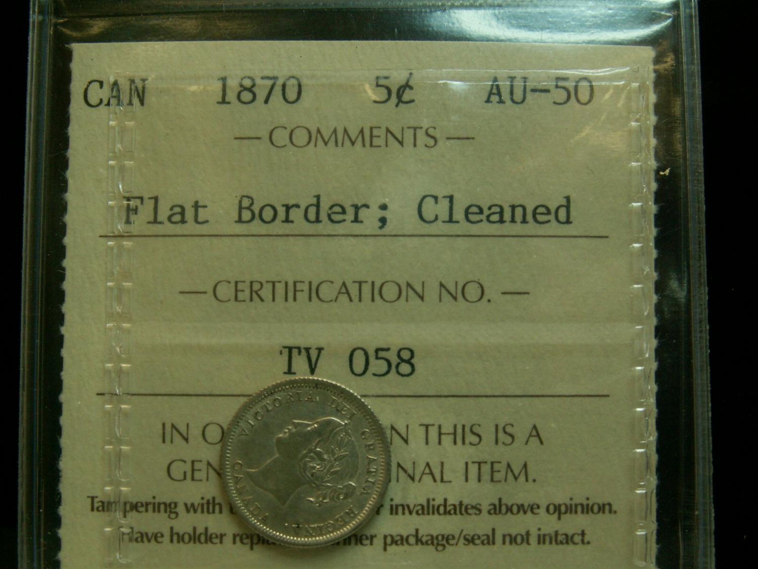 1870 5¢ FB ICCS AU50 Cleaned