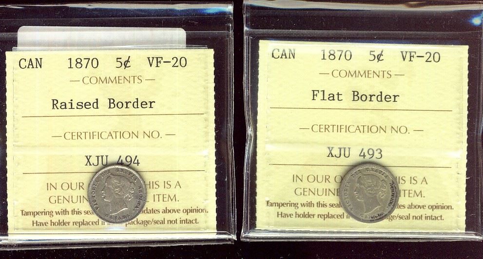 1870 5¢ FB & RB ICCS VF20. Lot of 2 coin.
