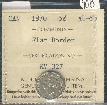 1870 5¢ ICCS AU-55 Flat Border.