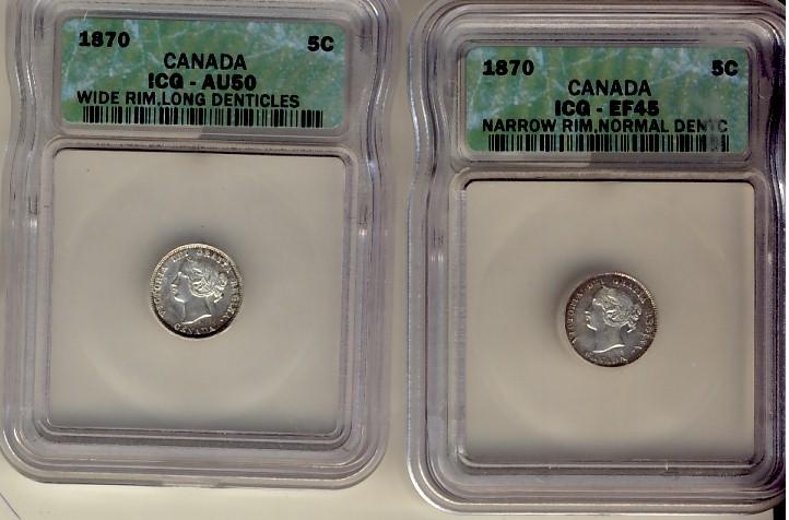 1870 5¢ Narrow EF45 & Wide AU50. Lot of 2 coins both ICG graded.