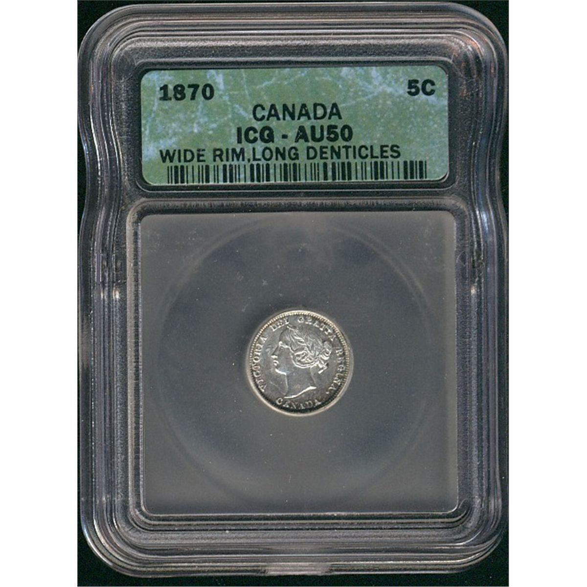 1870 5¢ RB, ICG AU50. Brilliant with hints of color toning.
