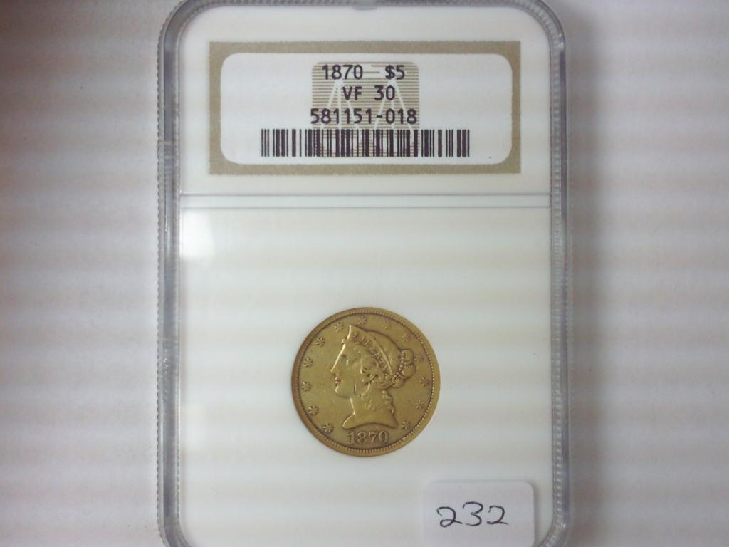 1870 $5 US GOLD HALF EAGLE NGC (VF30)