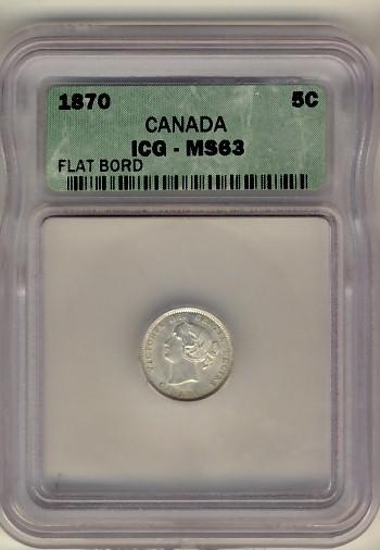 1870 5¢ Wide ICG MS63. Brilliant with lustre.