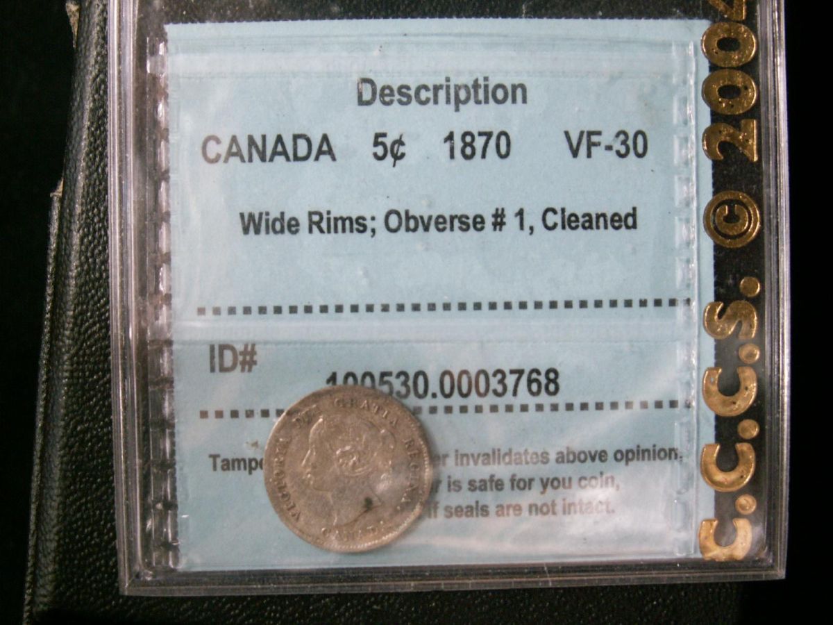 1870 5¢ Wide Rims Obv 1 CCCS VF30. Cleaned