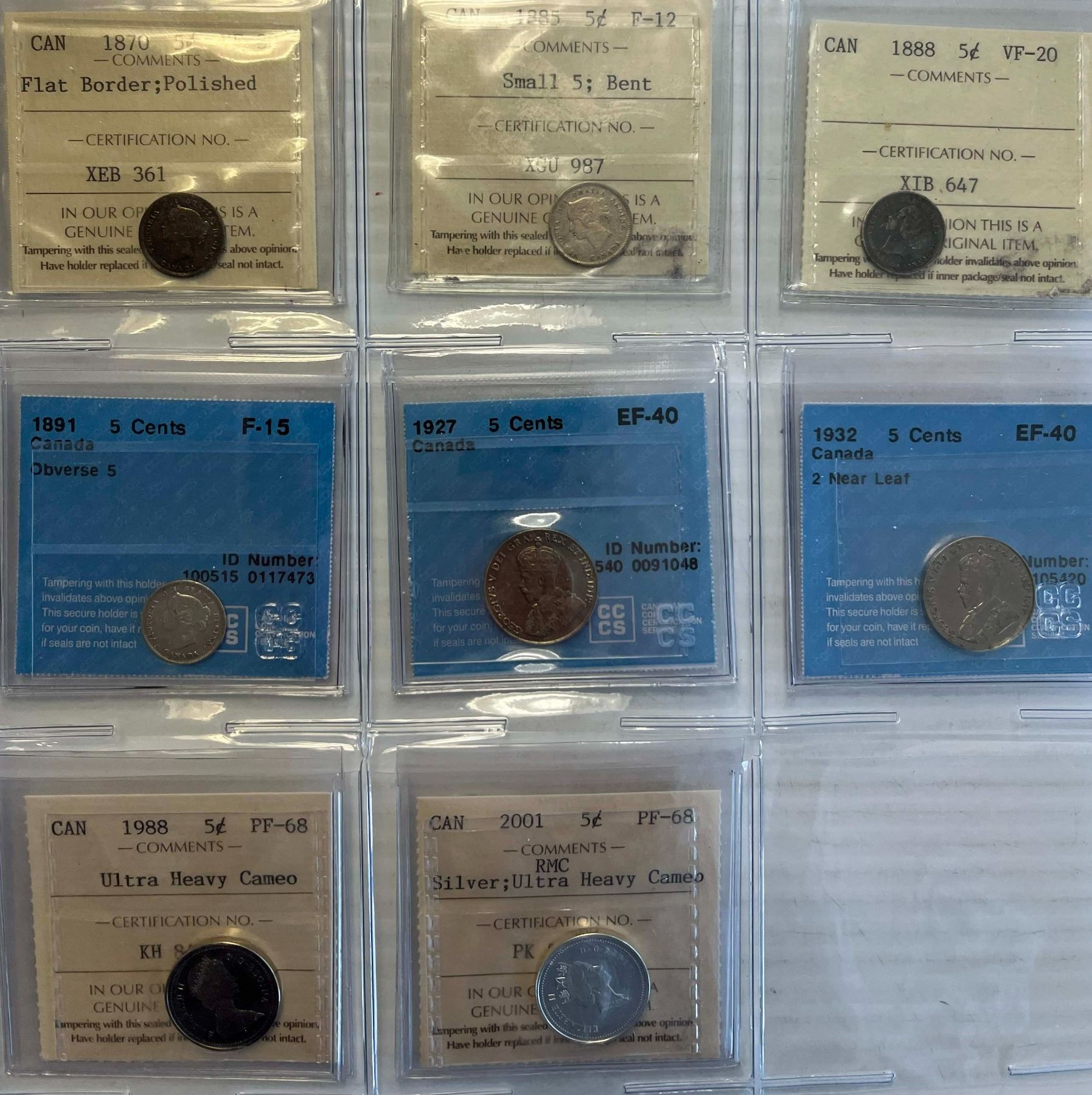 1870 5¢ to 2001 Group of 8 coins, all ICCS/CCCS Very Fine-20 to Gem Mint State-65. Some with issues..