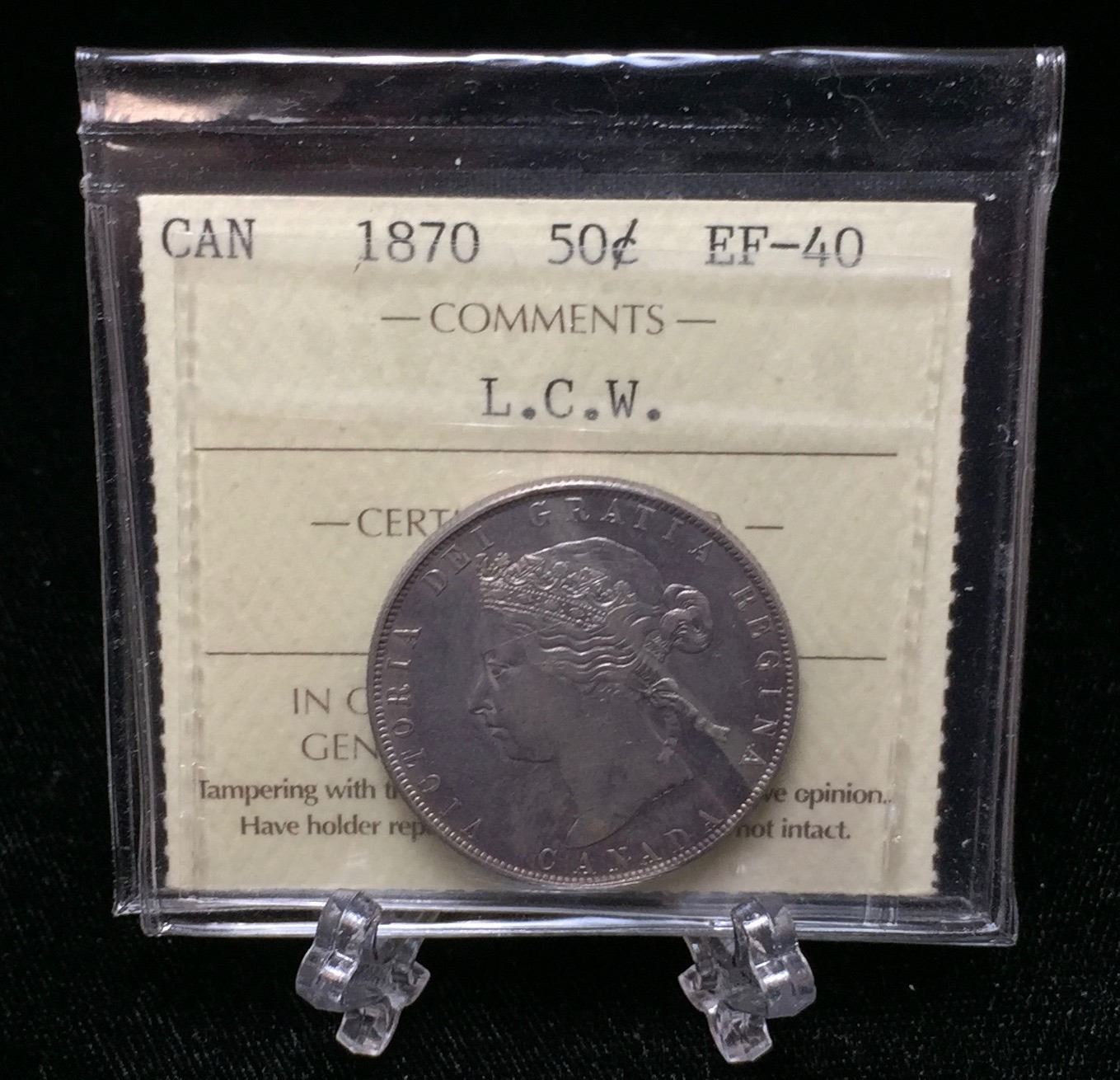 Lot 402; Sterling Silver .925 1870 50-Cents Canada ICCS EF40 L.C.W., Queen Victoria Effigy XNF 091