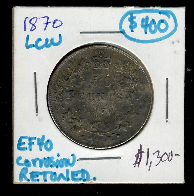8. The estimates listed are taken from the Canadian Coin News, Charlton catalogues, Canadian Dealers News letter and retail prices, e-bay sales, Cornwell re- port and/or the actual market selling/ asking prices. Key dates and Highest grade material will generally command a premium and should sell close to and/ or above the estimates. Our estimates are fair and very reasonable, please bid accordingly. No lot should sell less than 50% of the estimates. With a bid of 80% of the estimate, you have a fair chance of succeeding, with a bid of 100% of the highest estimate, you will be likely to succeed.