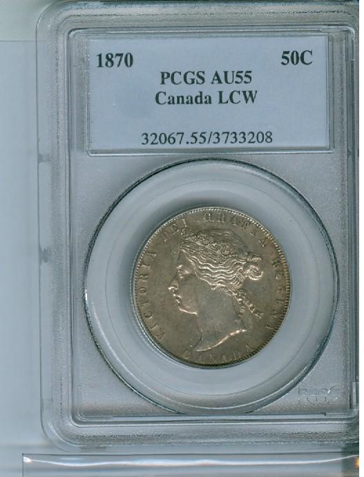1870 50¢ LCW PCGS AU55. Sharp details with lustre.