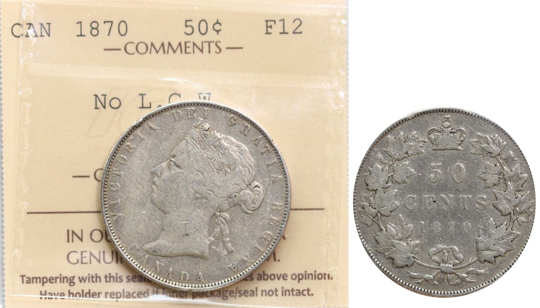 1870 50¢ "NO LCW" ICCS Fine-12. A nice problem free exaample.