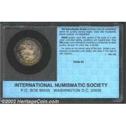 Coins sold referencing a third-party grading service (“Certified Coins”) are sold “as is” without any express or implied warranty, except for a guarantee by Auctioneer that the Certified Coins are genuine. Certain warranties may be available from the grading services and the bidder is referred to the following services for details of any such warranties: ANACS, P.O. Box 182141, Columbus, Ohio 43218-2141; Hallmark Grading Service, Inc., P.O. Box 2879, Woburn, MA 01888; International Numismatic Society (INS), P.O. Box 66555, Washington, DC 20035; Numismatic Certification Institute, Inc., Heritage Plaza, Highland Park Village, Dallas, Texas 75205-2788; Numismatic Guaranty Corporation (NGC), P.O. Box 1776, Parsippany, NJ 07045; Professional Coin Grading Service (PCGS), P.O. Box 9458, Newport Beach, CA 92658; ICG, 7901 East Bellvue Ave., Suite 50, Englewood, CO 80111.
