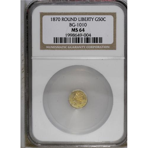 1870 50C Liberty Round 50 Cents, BG-1010, R.3, MS64 NG