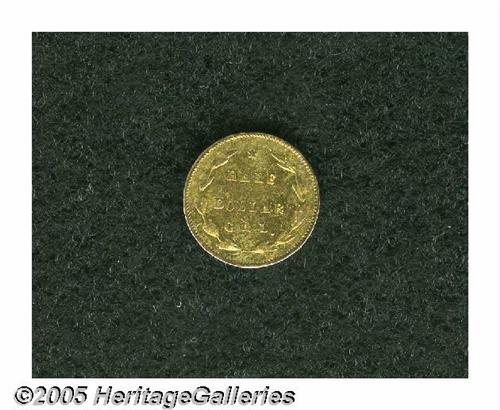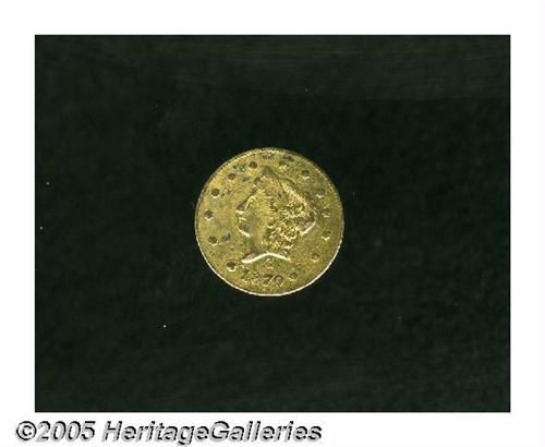 <B>1870<50C> Liberty Round 50 Cents, BG-1024, Low R.4, MS60 Bent, Corroded, Scratched, Uncertified.</B></I> This somewhat wavy example has a few moderate pinscratches and specks of verdigris on the obverse field.
