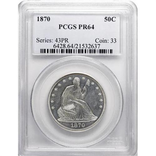 <B>1870 50C PR64 PCGS.</B></I> A glittering, well preserved near-Gem proof from a mintage of 1,000 coins, only a small percentage of which survive in better condition. Bright and untoned, a few hairlines are seen in the obverse field. A small planchet flake is also noted on Liberty's ankle. <BR><I>From The Kallenberg #1 PCGS Registry Set Of Proof Half Dollars.</B></I><BR><BR><B>Coin Engraver:</B> Christian Gobrecht<BR><BR><b>Shipping:</b> Coins & Currency (<a target="_blank" href="http://www.heritageauctions.com/common/shipping.php">view shipping information</a>)