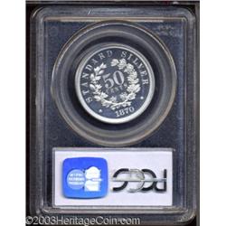 <table><tr><td><TABLE cellSpacing=0 cellPadding=0 width="100%" bgColor=#000000 border=0><TBODY> <TR><TD width="100%"><TABLE cellSpacing=1 cellPadding=3 width="100%" border=0><TBODY><TR><TD width="100%" bgColor=#79735c><FONT face=arial color=#ffffff size=3><B>Description</B> </FONT></TD></TR><TR><TD width="100%" bgColor=#ffffff><FONT face=arial size=2><B>1870 50C Standard Silver Half Dollar, Judd-985, Pollock-1106, R.7, PR64 Cameo PCGS.</B></I> The obverse shows a Bust of Liberty facing right, surrounded by the legend UNITED STATES OF AMERICA, and the motto IN GOD WE TRUST on a scroll below. Miss Liberty wears a diadem inscribed LIBERTY, and her hair is tied in a bun. The reverse displays the denomination 50 CENTS centered in an oak and laurel wreath, with STANDARD SILVER above and the date 1870 below. The currently offered piece is fully struck with watery, modestly reflective fields and pleasing cameo contrast. There are a few minor handling marks on each side, and a planchet streak (as struck) extends across the bottom of the letters in SILVER, on the reverse, terminating near the left reverse star. Still a rare and highly desirable near-Gem, the only proof example of this variety to be graded by either NGC or PCGS. Population: 1 in 64, 0 finer (10/03).<BR><I>From The New Millennium Collection.</B></I> </FONT></TD></TR></TBODY></TABLE></TD></TR></TBODY></TABLE><BR><A name=PricesRealized></A><TABLE cellSpacing=0 cellPadding=0 width="100%" bgColor=#000000 border=0><TBODY><TR><TD width="100%"><TABLE cellSpacing=1 cellPadding=3 width="100%" border=0><TBODY><TR><TD width="100%" bgColor=#79735c><A name=PR><FONT face=arial color=#ffffff size=3><B>Previous Prices from Heritage Auctions</B> </FONT></A></TD></TR><TR><TD bgColor=#f6f6ed><TABLE cellSpacing=0 cellPadding=0 width="100%" border=1><TBODY><TR><TD align=middle width="33%"><B>Date</B></TD><TD align=middle width="33%"><B>Service</B></TD><TD align=middle width="33%"><B>Price</B></TD></TR><TR bgColor=whitesmoke><TD width="33%"><B>08/07/1998</B></TD><TD width="33%">NGC</TD><TD width="33%">$10,637.50</TD></TR></TBODY></TABLE></TD></TR><TR><TD bgColor=#ffffff><FONT face=arial size=1 ?>PLEASE NOTE: All prices realized reflect the final hammer price PLUS the buyer's premium in auctions that charge a buyer's premium. Each item has a notation at the top of the listing indicating whether that lot included a buyer's premium. Example: A item that sells with a final hammer price of $100 and a 20% buyer's premium will display with a price realized of $120. All information listed is intended to be as accurate as possible, but errors are possible. Please use this guide carefully and inform us of any inaccuracies. </FONT></TD></TR></TBODY></TABLE></TD></TR></TBODY></TABLE><BR><TABLE cellSpacing=0 cellPadding=0 width="100%" bgColor=#000000 border=0><TBODY><TR><TD width="100%"><TABLE cellSpacing=1 cellPadding=3 width="100%" border=0><TBODY><TR><TD width="100%" bgColor=#79735c colSpan=6><FONT face=arial color=#ffffff size=3><B>Price Guide*</B> </FONT></TD></TR><TR bgColor=#f6f6ed><TD align=middle><B>Grade</B> </TD><TD align=middle><B>Coin World<BR>(Trends)</B> </TD><TD align=middle><B>Numismedia<BR>Retail</B> </TD><TD align=middle><B>Numismedia<BR>Wholesale</B> </TD><TD align=middle><B>Coin<BR>Universe</B> </TD><TD align=middle><B>Heritage<BR>Value Index</B> </TD></TR><TR bgColor=#ffffff><TD align=middle>63</TD><TD align=right>---</TD><TD align=right>---</TD><TD align=right>---</TD><TD align=right>---</TD><TD align=right>---</TD></TR><TR style="FONT-WEIGHT: bold" bgColor=#cccfdd><TD align=middle>64</TD><TD align=right>---</TD><TD align=right>---</TD><TD align=right>---</TD><TD align=right>---</TD><TD align=right>---</TD></TR><TR bgColor=#ffffff><TD align=middle>65</TD><TD align=right>---</TD><TD align=right>---</TD><TD align=right>---</TD><TD align=right>---</TD><TD align=right>---</TD></TR><TR bgColor=#ffffff><TD colSpan=6><FONT size=1>*All information listed is intended to be as accurate as possible, but errors are possible. No item may be returned or refused based on this information which is provided as a service to our customers. You should contact each pricing source directly to determine the accuracy of this information. </FONT></TD></TR></TBODY></TABLE></TD></TR></TBODY></TABLE><BR><TABLE cellSpacing=0 cellPadding=0 width="100%" bgColor=#000000 border=0><TBODY><TR><TD width="100%"><TABLE cellSpacing=1 cellPadding=3 width="100%" border=0><TBODY><TR><TD width="100%" bgColor=#79735c><FONT face=arial color=#ffffff size=3><B>Population Guide</B> </FONT></TD></TR><TR bgColor=#ffffff><TD align=middle><!-- Begin Output of Population Grid--><TABLE cellSpacing=0 cellPadding=0 width="100%" border=0><TBODY><TR><TD vAlign=center><TABLE cellSpacing=0 width="100%" border=1 cellsadding="3"><TBODY><TR><TD vAlign=center><TABLE cellSpacing=0 cellPadding=3 width="100%" border=1><TBODY><TR><TD vAlign=center align=middle bgColor=#f0f1e8 colSpan=2 <CENTER><FONT face=Arial size=2><B>PCGS Pop </B></FONT><CENTER></CENTER></TD><TD vAlign=center align=middle bgColor=#f0f1e8 colSpan=2><CENTER><FONT face=Arial size=2><B>NGC Pop</B></CENTER></FONT></TD></TR><TR><TD vAlign=center><FONT face=Arial size=2>(64)</FONT> </TD><TD vAlign=center align=right><FONT face=Arial size=2>1</FONT> </TD><TD vAlign=center><FONT face=Arial size=2>(64)</FONT> </TD><TD vAlign=center align=right><FONT face=Arial size=2>0</FONT> </TD></TR><TR><TD vAlign=center><FONT face=Arial size=2>(>64)</FONT> </TD><TD vAlign=center align=right><FONT face=Arial size=2>0</FONT> </TD><TD vAlign=center><FONT face=Arial size=2>(>64)</FONT> </TD><TD vAlign=center align=right><FONT face=Arial size=2>0</FONT> </TD></TR></TBODY></TABLE></TD></TR></TBODY></TABLE></TD></TR></TBODY></TABLE><!-- End Output of Population Grid--></TD></TR></TBODY></TABLE></TD></TR></TBODY></TABLE><BR><TABLE cellSpacing=0 cellPadding=0 width="100%" bgColor=#000000 border=0><TBODY><TR> Important notice: Heritage usually auctions material at the rate 