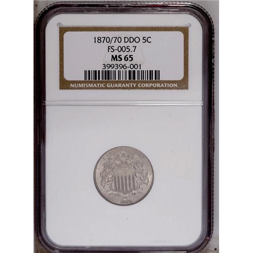 1870 5C Doubled Die Obverse MS65 NGC. FS-005.7. The ob 1870[5C] Doubled Die Obverse MS65 NGC.