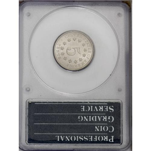 <B>1870<5C> MS65 PCGS.</B></I> Another unheralded condition scarcity among business strike Shield nickels, this satin-like Gem is well detailed except for an area of softness at the base of the shield. Doubling on the date and several of the reverse stars is quite pronounced. Population: 22 in 65, 4 finer (3/06). <BR><BR><B>Important notice:</B> Heritage usually auctions material at the rate of 200-250 lots per hour. On some occasions eBay Live bid software or the Internet may not be able to keep up with the pace of the auction. We recommend placing a realistic absentee bid now as insurance to avoid disappointment. Occasionally the auctioneer may eliminate or reject an eBay Live bid, and the auctioneer may also reopen a lot after the close of the eBay live bidding (usually because we missed an audience bid), and may reject your bid even if it shows you as the winning bidder. By bidding via eBay Live, you agree that Heritage may award the lot to another bidder at its sole discretion under the circumstances described above or any other reasonable circumstances. Since eBay bids are not shown to us until we open the lot on the floor, we treat those bids just like floor bids. In most cases the floor responds before the eBay bid is presented to us, due to Internet lag time, so for consistency we have made it a policy that floor bids are always considered first over tie eBay live bids. Also please note that all Heritage lots purchased through eBay Live carry a 20% Buyer's Premium. Please make sure you read the Terms and Conditions before you bid. This lot is being auctioned in conjunction with a live floor auction by Heritage Galleries & Auctioneers. All final auction and invoice information will be supplied by Heritage Galleries & Auctioneers, and all other information should be considered preliminary. Lot:851 <BR><BR><B>Winning Notification and Billing:</B> After the FINAL session in this auction is complete, Heritage will send e-mail and snail mail invoices. This process normally takes several days. All final auction and invoice information will be supplied by Heritage Galleries & Auctioneers, and all other information should be considered preliminary. <BR><BR>This auction will be conducted on a live auction floor and over the Internet through eBay Live. If you choose to place an absentee bid, please take a moment to <font color='#0000ff'><u><a href='http://pages.ebay.com/liveauctions/help/before/laabsentee.html'>learn how eBay Live absentee bidding works</a></u></font><font color='#000000'>