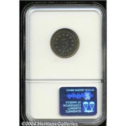 <table><tr><td><table><tr><td>1870 5C PR65 NGC. Moderately deep mirrors reflect the attractive golden-red colors of the clean underlying surfaces. With close inspection, one can see a single toning spot at the center of the obverse, but this is a highly attractive Gem.From the Robert Bowling Collection. <BR><BR><B>Important notice:</B> Heritage usually auctions material at the rate of 200-250 lots per hour. On some occasions eBay Live bid software or the Internet may not be able to keep up with the pace of the auction. We recommend placing a realistic absentee bid now as insurance to avoid disappointment. Occasionally the auctioneer may eliminate or reject an eBay Live bid, and the auctioneer may also reopen a lot after the close of the eBay live bidding (usually because we missed an audience bid), and may reject your bid even if it shows you as the winning bidder. By bidding via eBay Live, you agree that Heritage may award the lot to another bidder at its sole discretion under the circumstances described above or any other reasonable circumstances. Since eBay bids are not shown to us until we open the lot on the floor, we treat those bids just like floor bids. In most cases the floor responds before the eBay bid is presented to us, due to Internet lag time, so for consistency we have made it a policy that floor bids are always considered first over tie eBay live bids. Also please note that all Heritage lots purchased through eBay Live carry a 20% Buyer's Premium. Please make sure you read the Terms and Conditions before you bid. <BR><BR><B>IMPORTANT ANNOUNCEMENT ABOUT RESERVES:</B> Heritage now divulges all reserves on its web site 7 days before every auction. If you want to know whether the reserve on this lot has been met, and if not, what the reserve amount is, please visit this lot page on the HeritageCoin.com web site, or email: bid@HeritageGalleries.com </span></font></td></tr></table></td></tr></table>