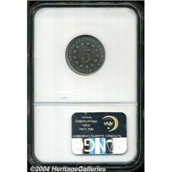 1870 5C PR65 S NGC. Lovely peach, rose,
