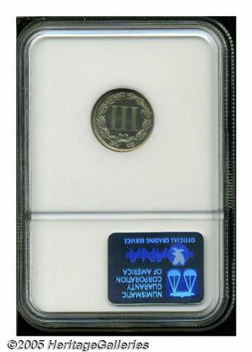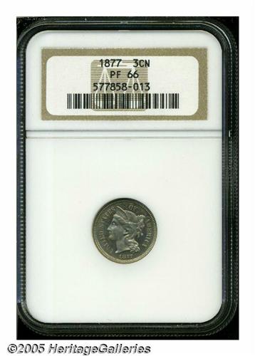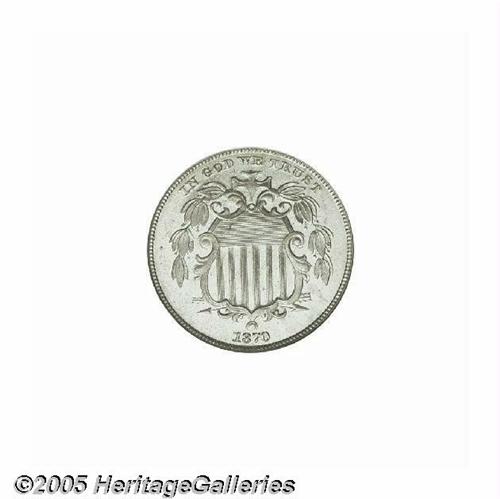 <B>1870<5C> PR66 Cameo NGC.</B></I> Essentially untoned with bright, watery mirrors and just enough contrast to merit a cameo designation. Scarce as such. Population: 11 in 66 Cameo, 1 finer (6/05).