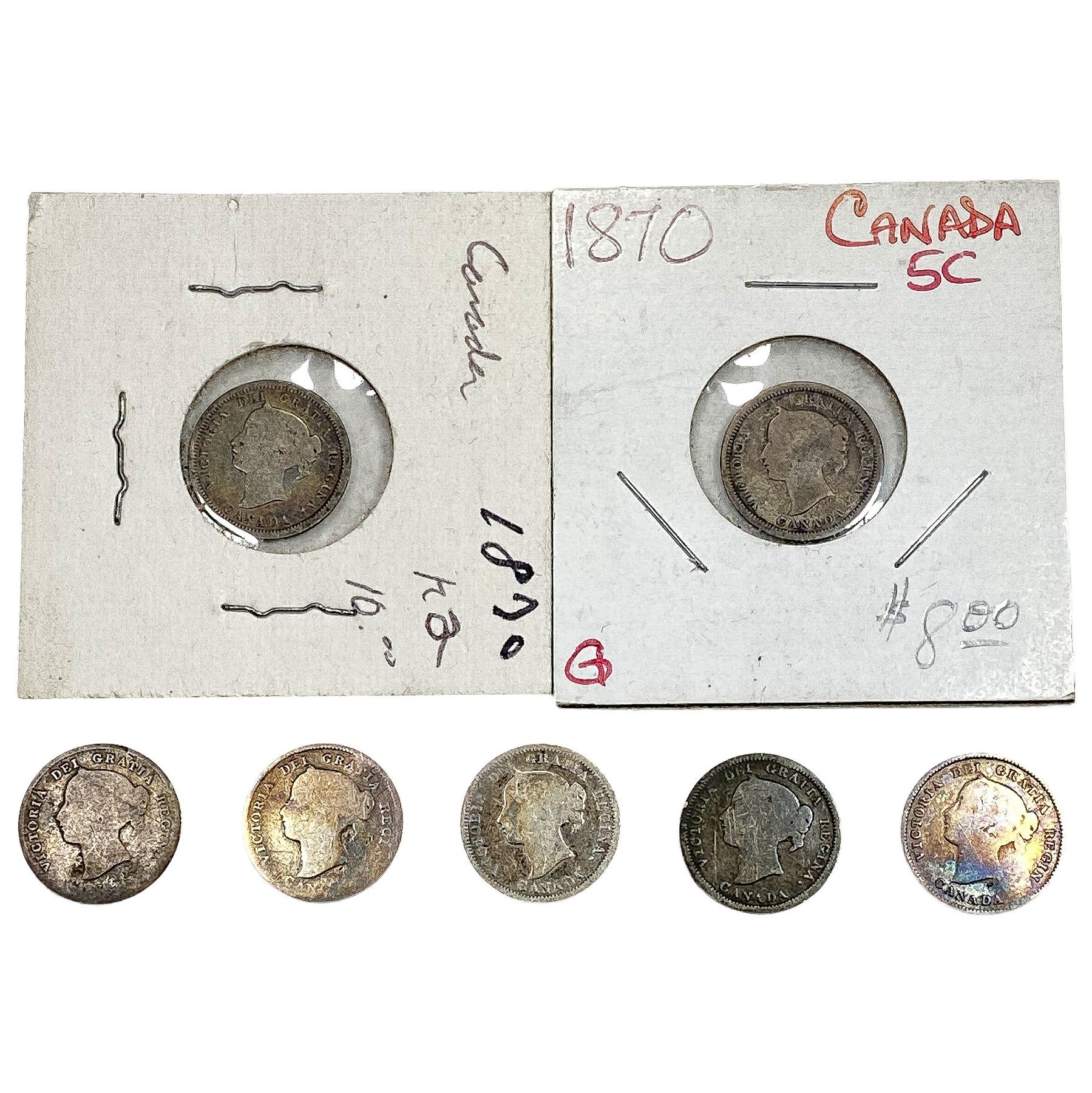 1870 Better Date Canada 5 Cent Silver [7 Coins]