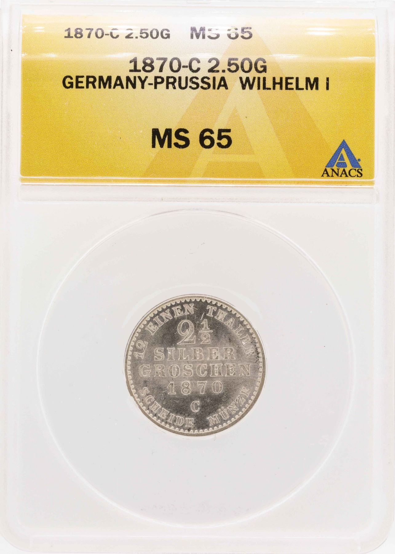 One 1870-C Germany-Prussia Wilhelm I 2 1/2 Groschen Coin ANACS MS65.