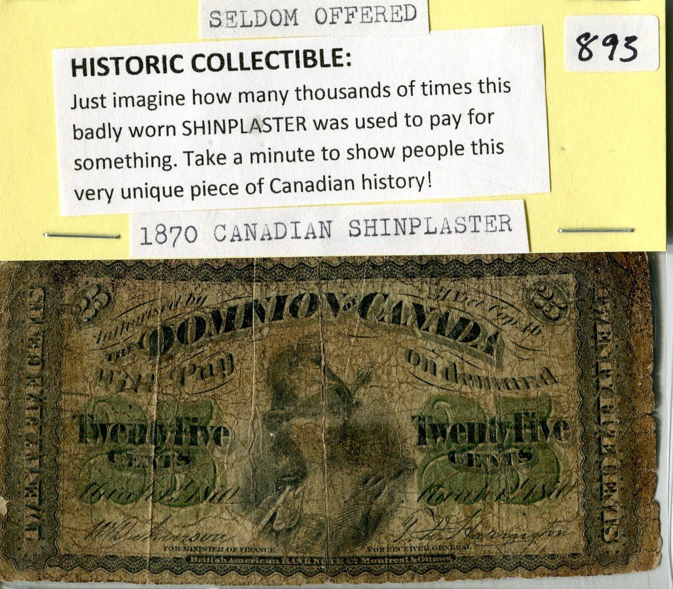 1870 CANADIAN SHINPLASTER HISTORIC COLLECTIBLE SELDOM OFFERED