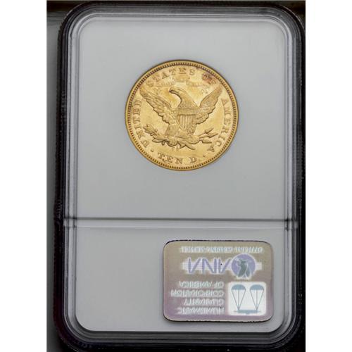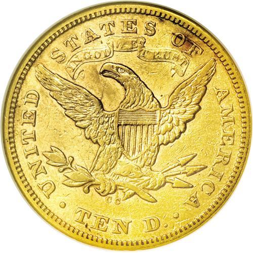 <B>1870-CC<$10> XF45 NGC.</B></I> Variety 1-A, Die State I. According to noted branch mint gold expert Douglas Winter, the 1870-CC is not only the rarest Carson City eagle, but it is eclipsed only by the 1870-CC double eagle as the rarest gold issue from that mint. Only 5,908 pieces were struck. Most survivors circulated heavily, and the majority are in grades below XF. Relatively sharp for the grade, with pleasing plumage detail within the wings. Attractive reddish-gold coloration adorns each side of the coin. Softly struck on the obverse stars, as well as the eagle's talons and arrow fletchings, with slight, even wear on the central highpoints of the design. Perhaps surprisingly for such a low mintage issue, there are two distinct die states known for the 1870-CC Liberty eagle. This appears to be an example of Winter's Die State I, with the centers mostly well impressed.<BR><I>From The Clifton Rodenburg Collection.</B></I>