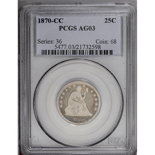 "1870-CC 25C AG3 PCGS. Only 8,340 quarte"
