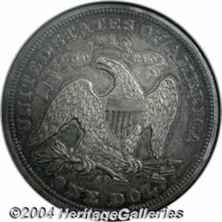 <table><tr><td><table><tr><td>1870-CC S$1 AU55 NGC. Variety 1-D. Deep golden-brown, forest-green, and mauve patina bathes this crisply struck first year Carson City Dollar. Flashy luster readily penetrates the rich toning. Faint pinscratches east of the date and near the obverse center do not refute the eye appeal. It is unusual for so many 1870-CC Dollars to be offered in a single auction; an opportunity of selection awaits the specialist of this challenging series. Population: 14 in 55, 23 finer (3/04). <BR><BR><B>Important notice:</B> Heritage usually auctions material at the rate of 200-250 lots per hour. On some occasions eBay Live bid software or the Internet may not be able to keep up with the pace of the auction. We recommend placing a realistic absentee bid now as insurance to avoid disappointment. Occasionally the auctioneer may eliminate or reject an eBay Live bid, and the auctioneer may also reopen a lot after the close of the eBay live bidding (usually because we missed an audience bid), and may reject your bid even if it shows you as the winning bidder. By bidding via eBay Live, you agree that Heritage may award the lot to another bidder at its sole discretion under the circumstances described above or any other reasonable circumstances. Since eBay bids are not shown to us until we open the lot on the floor, we treat those bids just like floor bids. In most cases the floor responds before the eBay bid is presented to us, due to Internet lag time, so for consistency we have made it a policy that floor bids are always considered first over tie eBay live bids. Also please note that all Heritage lots purchased through eBay Live carry a 20% Buyer's Premium. Please make sure you read the Terms and Conditions before you bid. <BR><BR><B>IMPORTANT ANNOUNCEMENT ABOUT RESERVES:</B> Heritage now divulges all reserves on its web site 7 days before every auction. If you want to know whether the reserve on this lot has been met, and if not, what the reserve amount is, please visit this lot page on the HeritageCoin.com web site, or email: bid@HeritageGalleries.com </span></font></td></tr></table></td></tr></table>