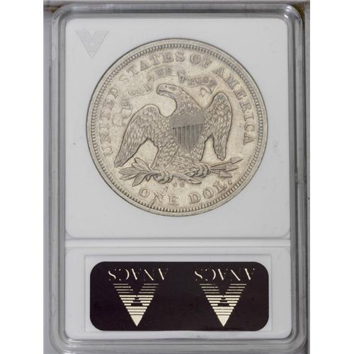 <B>1870-CC<img border='0' src='http://www.heritagecoins.com/images/star.gif' width=10 height=10>$1>--Cleaned--ANACS. AU50 Details.</B></I> Variety 1-C. A scarce die combination, since the C reverse is usually paired with the 3 obverse die. A glossy and hairlined piece with tan and cream-gray toning. The most common Carson City Seated dollar, but still quite scarce, since only 11,758 pieces were struck.