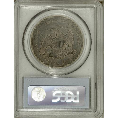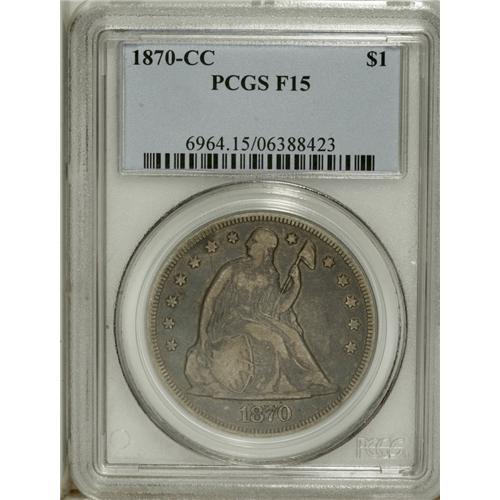 <B>1870-CC S$1 Fine 15 PCGS.</B></I> Variety 2-E. The well-worn devices are reddish-brown, while the fields have the same color mixed with violet. With just 12,462 pieces struck, an example in any condition is elusive.<BR><BR><b>Shipping:</b> Coin/Currency (<a target="_blank" href="http://www.heritageauctions.com/common/shipping.php">view shipping information</a>)