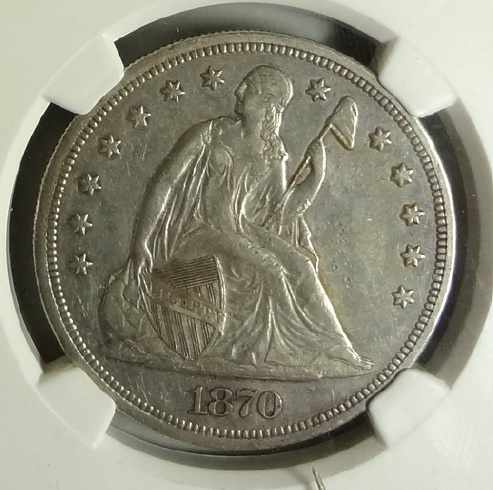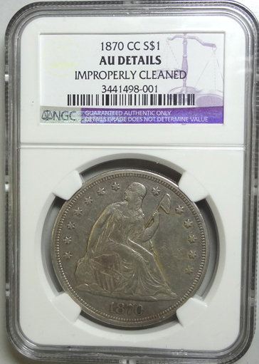 1870-CC Seated Liberty Dollar NGC AU Details Cleaned. Doesn't look cleaned. Greysheet AU=$7000