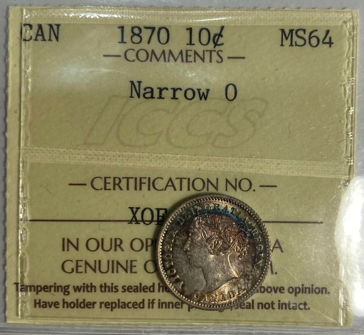 1870 Canada 10 Cent Narrow O ICCS MS 64