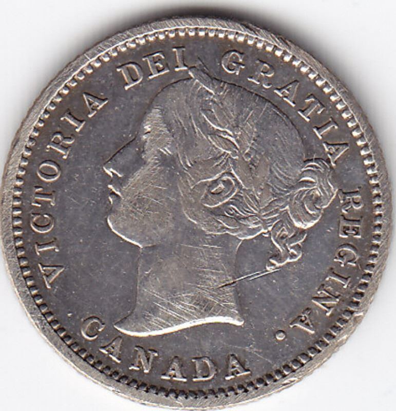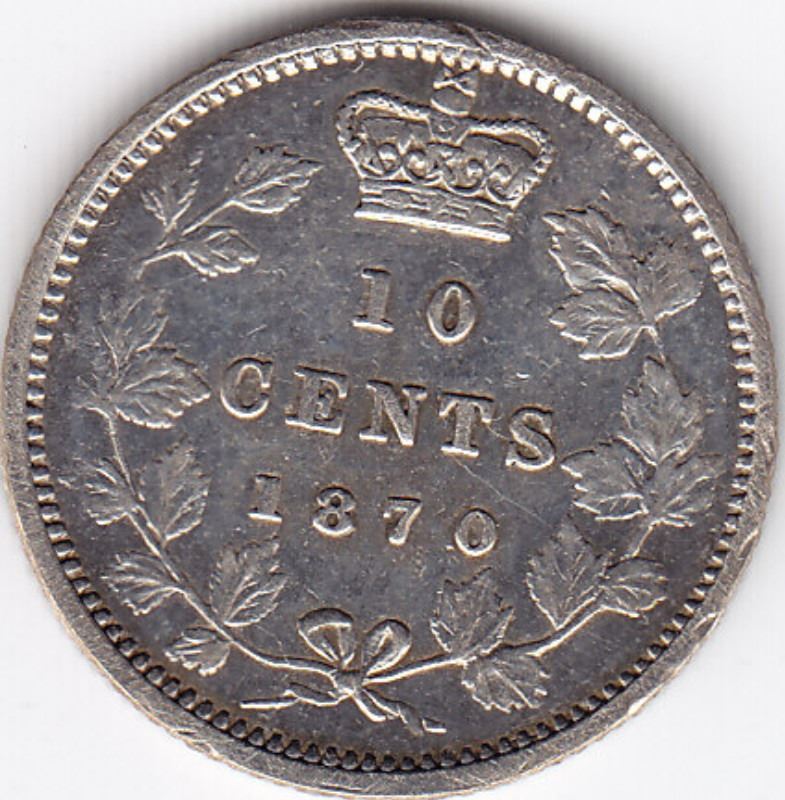 1870 Canadian Silver 10-Cent Dime Coin - Wide "0" Varient - VF+ Condition