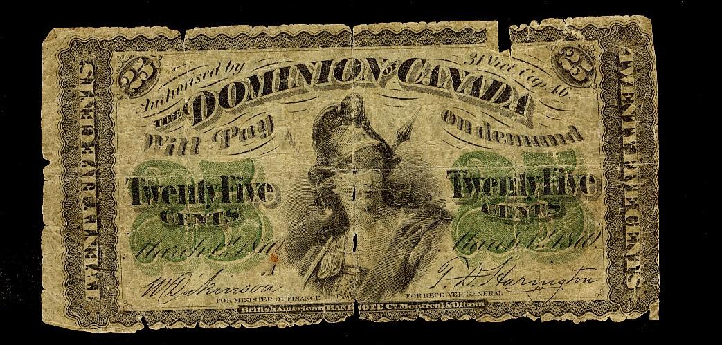 1870 DC-1a 25¢ Shinplaster. Rare Ltr A type in Good condition with tears..