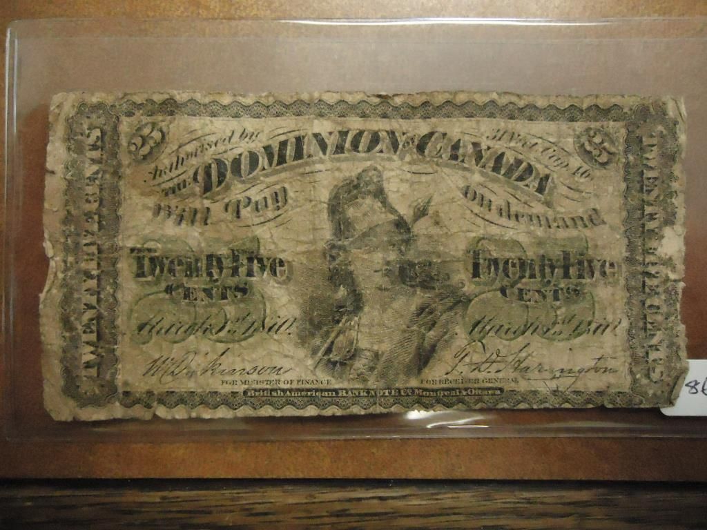 1870 DOMINION OF CANADA 25 FRACTIONAL NOTE