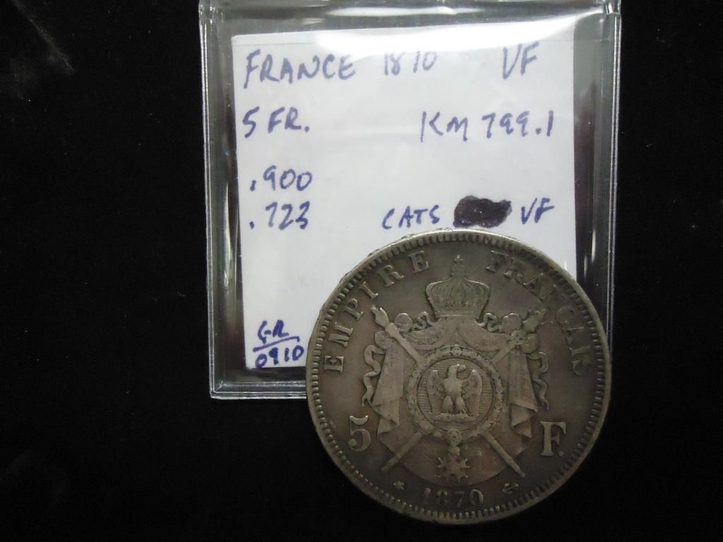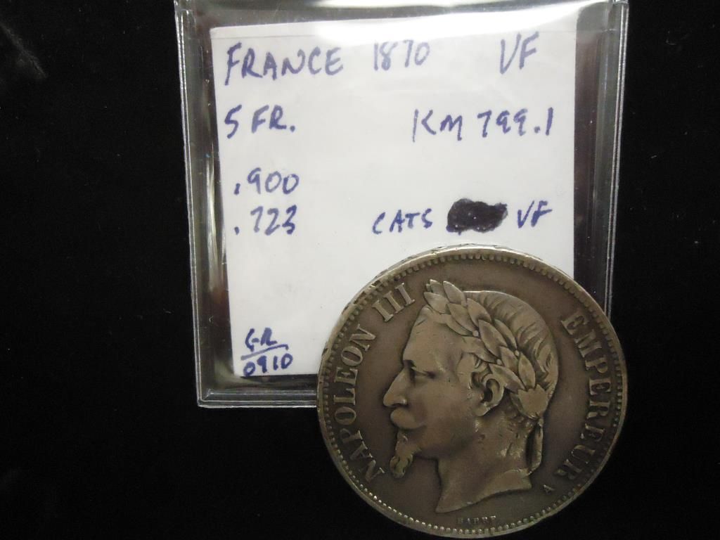 1870 FRANCE SILVER 5 FRANC VERY FINE