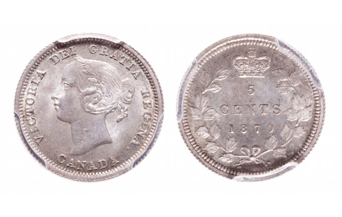 1870. Flat Border. Both ICCS and PCGS graded Mint State-64. Light pearl gray toning over satiny fields. Very good 'eye appeal'.