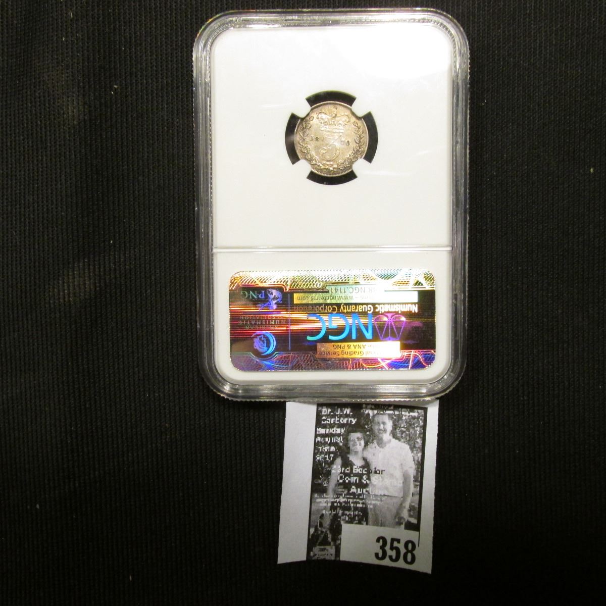 1870 Great Britain Silver Three Pence NGC slabbed AU 53.