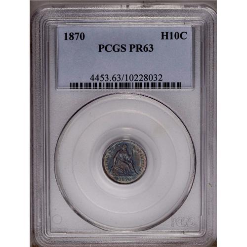 1870 H10C PR63 PCGS. Ocean-blue toning enlivens this e 1870[H10C] PR63 PCGS.