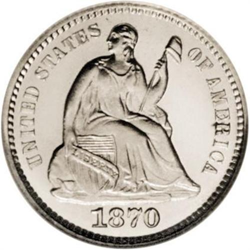 <B>1870<H10C> PR67 Cameo NGC.</B></I> A breathtaking specimen with silver-white, frosty devices and limitless mirrored fields, this Superb Gem half dime is completely unencumbered by impairments of any kind, save for a tiny area of dark toning near the R in AMERICA. Light die striations are visible under magnification on the obverse, a part of the die preparation. A relatively large number of proofs were produced in this year, perhaps reflective of both the increasing number of coin collectors as well as the change to a new decade.