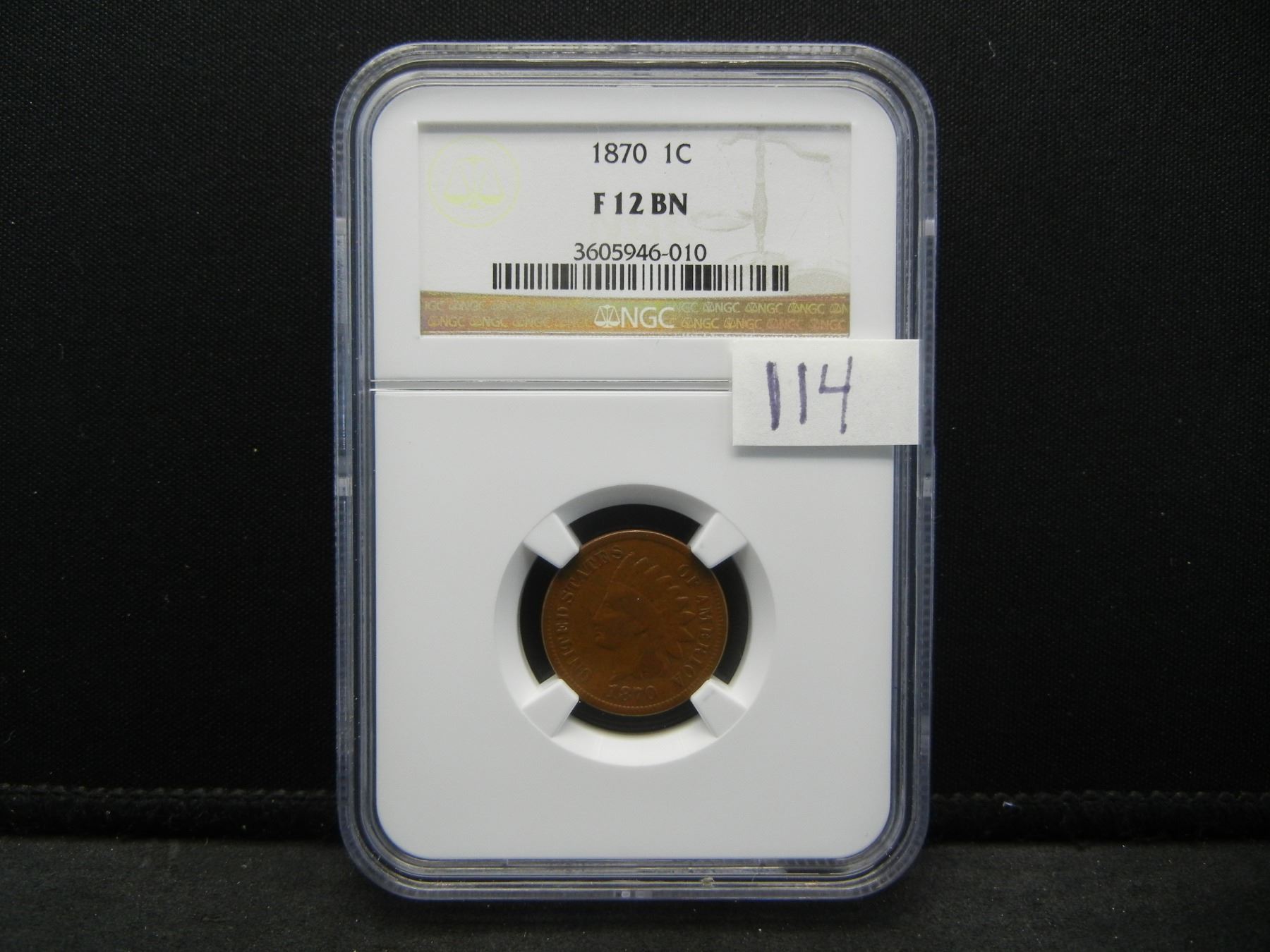 1870 Indian Cent NGC F12 BN Semi Key Date