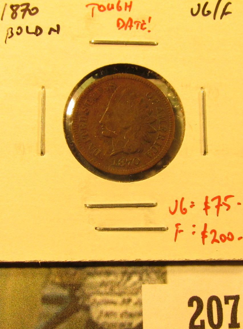 1870 Indian Cent, bold N, VG/F, tough date! Value VG = $75, F = $200